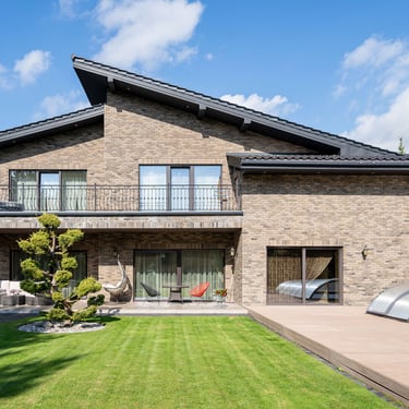 Keraminių čerpių stogas, mediniai langai, židinys, ąžuolo grindys